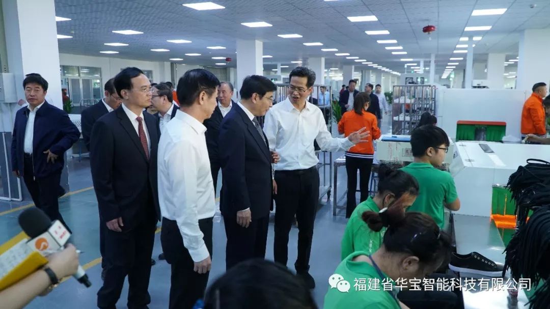 同日,工業(yè)和信息化部部長(zhǎng)苗圩、 國(guó)家制造強(qiáng)國(guó)建設(shè)戰(zhàn)略咨詢委主任周濟(jì)、 福建省人民政府副省長(zhǎng)林寶金,全國(guó)各地工業(yè)和信息化主管部門代表,智能制造試點(diǎn)示范企業(yè)、相關(guān)制造業(yè)企業(yè)、智能制造解決方案商、工業(yè)互聯(lián)網(wǎng)企業(yè)等代表,中國(guó)工程院等有關(guān)科研機(jī)構(gòu)、高校專家等百余人來到 華寶智能科技有限公司晉江基地的制鞋智能產(chǎn)線項(xiàng)目應(yīng)用現(xiàn)場(chǎng) 。